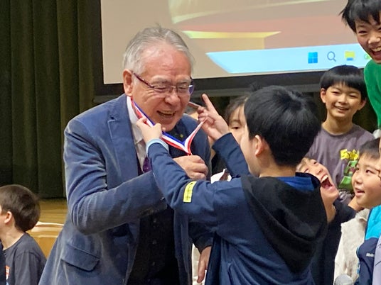 また、報告会では、児童たちが校長先生へ感謝状とメダルを贈る “逆・表彰式” が行われ、会場を大きな感動に包みました。