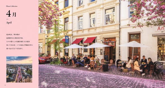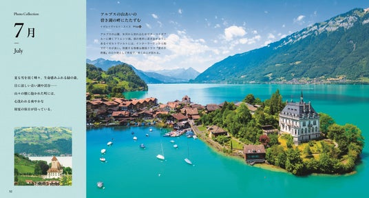 世界編では風情ある石畳、陽光にきらめく水辺、夕暮れに染まる丘の町、童話のような白銀の森……日本編では桜のトンネル、白砂のビーチ、真紅に染まる湖畔、雪に包まれた里山……など。季節の織りなす色や光が誌面いっぱいに広がり、月ごとの空気の移り変わりも感じられます。