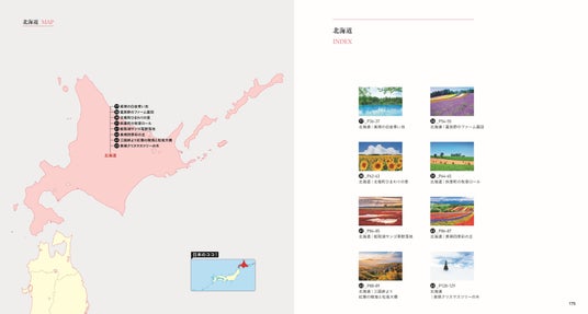 ▼1スポットを見開きの美しい写真で月ごとに紹介