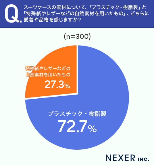 質問5:スーツケースの素材について、「プラスチック・樹脂製」と「特殊紙やレザーなどの自然素材を用いたもの」、どちらに愛着や品格を感じますか?