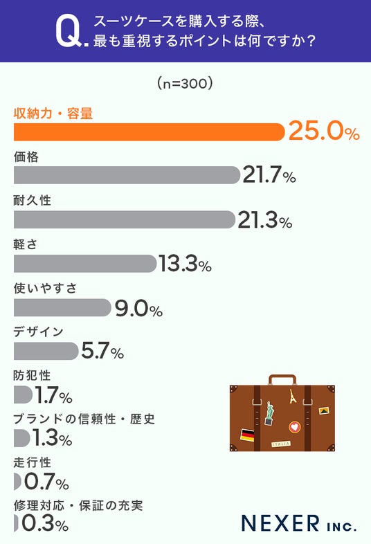 質問1:スーツケースを購入する際、最も重視するポイントは何ですか?