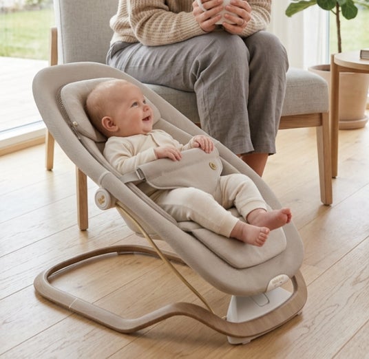 近年、育児用品においても機能性だけでなく、インテリアとの調和を重視する傾向が高まっています。特にリビングやダイニングなどで赤ちゃんを安全に見守れる居場所となるバウンサーは、家族が長い時間を過ごす居住空間において大きな存在感を放つアイテムのひとつ。Maxi-Cosi は、赤ちゃんの快適性とリビング空間に調和するデザインを両立したベビーバウンサーDove Pro を開発しました。