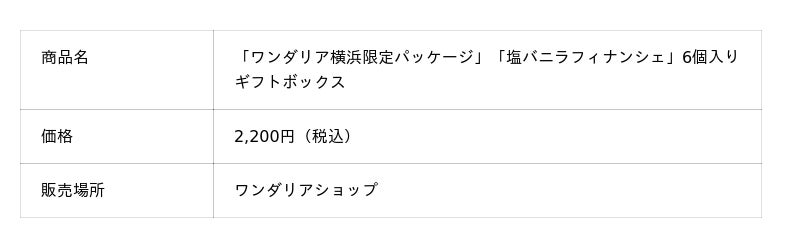 ■『横浜バニラ』とのコラボレーションで「塩バニラフィナンシェ」6個入りギフトボックスのワンダリア横浜限定パッケージが登場!