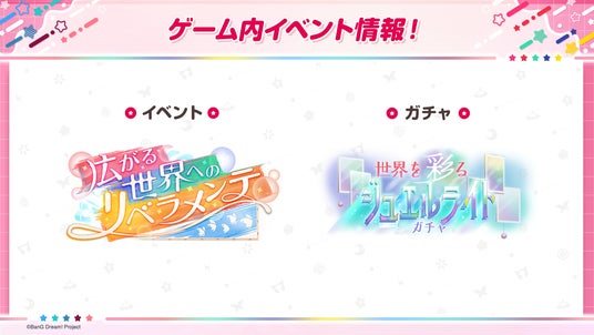 株式会社ブシロード(本社:東京都中野区 代表取締役社長:木谷高明)は、2026年3月26日(木)に配信した「バンドリ!TV LIVE 2026」#307にて、スマートフォン向けゲーム「バンドリ! ガールズバンドパーティ!」(以下ガルパ)で開催を予定しているドリームフェスティバルガチャや、ゲーム内への追加が決定したカバー楽曲に関する新情報を発表したことをお知らせいたします。