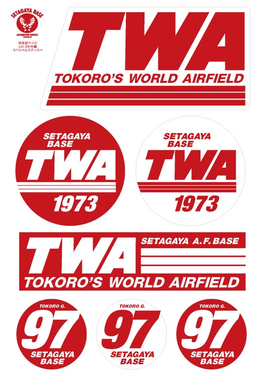 特別付録は所さんが最近オートバイに貼っている、かつてのアメリカの航空会社TWAのロゴをモチーフにした特製ステッカー。「TOKORO’S WORLD AIRFIELD」とデザインされたステッカーは、耐光性があるためバイクやクルマに貼ることが可能です。自慢の愛車や雑貨のワンポイントとして、本編と合わせお楽しみください。