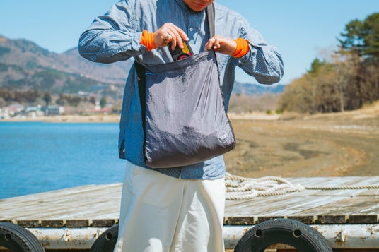 裏側に縫い付けられた収納袋にぎゅっと詰めれば、小さくコンパクトに。重量は55gと卵1個分で、普段使いしているカバンに入れても邪魔になりません。