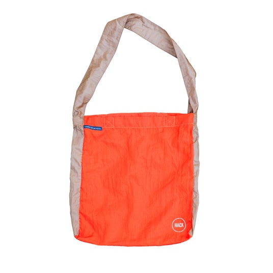 エコバッグはハンモック製造で発生する端材をアップサイクルして作られているアイテムで、CAMP HACK編集部でも愛用者が多く、今回のコラボに至りました。