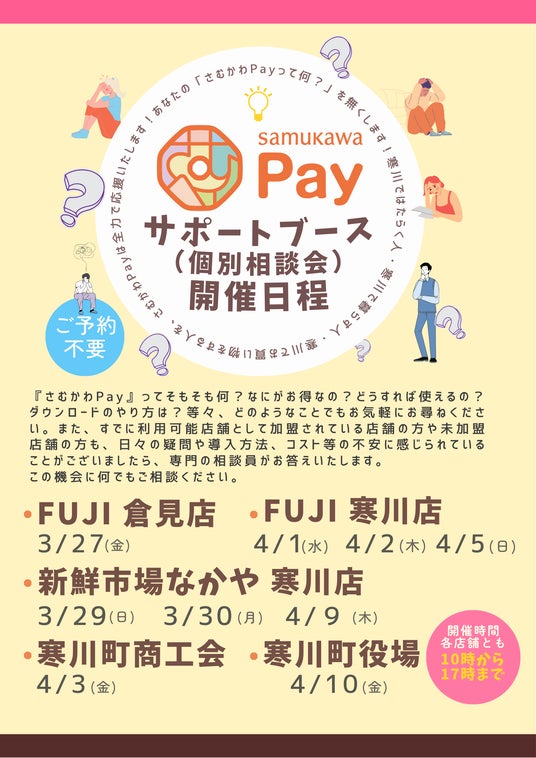 さむかわPayってなんだろう?どこでどう使えるんだろう?等ちょっとした疑問にもお答えしますので、不明点等がありましたらぜひお越しください。