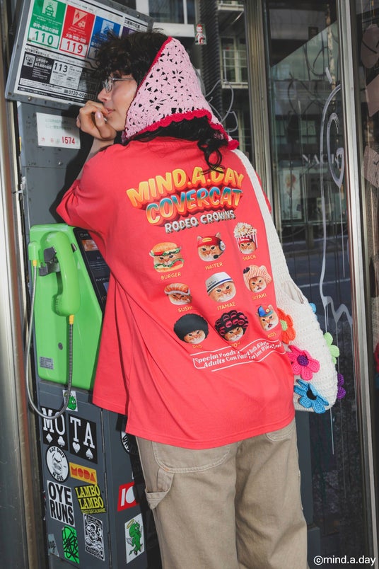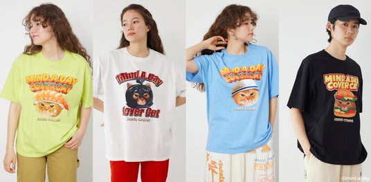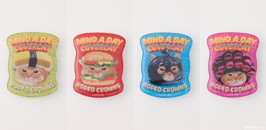 日常にある物や人物に扮したカバーキャットのイラストを、RODEO CROWNS WIDE BOWLのオリジナルボディのTシャツやニットパーカーにデザイン。また、人気のアクリルチャームやポーチ、エコバッグの他、スマホホルダーなどの小物も展開いたします。