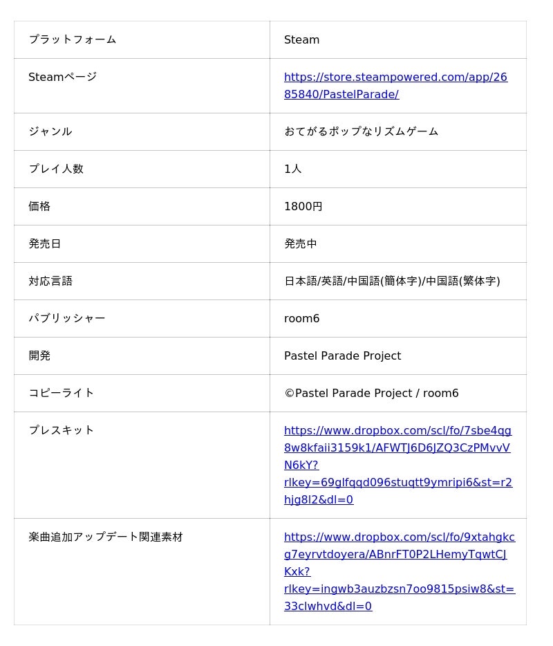 株式会社room6(本社:京都市左京区、代表取締役:木村征史、以下「room6」)は、リズムゲーム『Pastel☆Parade』の楽曲追加アップデートを3月27日に配信したことを発表いたします。