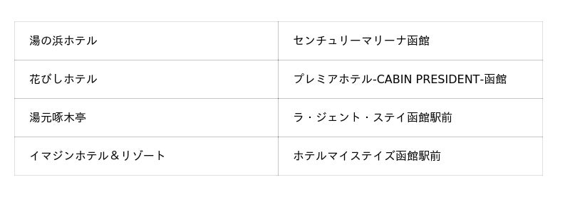 函館市内の8施設をご用意いたしました。