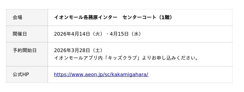 イオンモール各務原インターで、4/14・4/15の2日間限定開催!