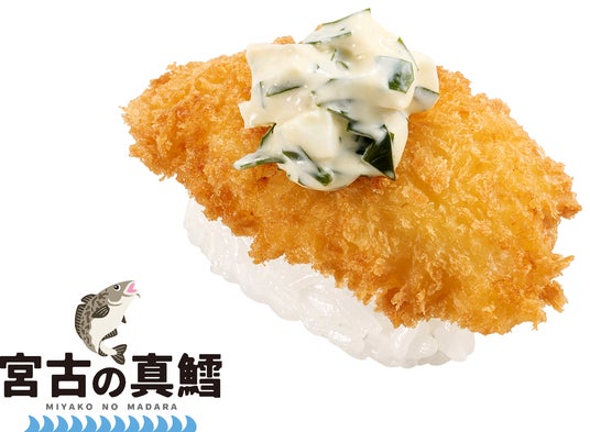 真鱈をフライにして、店内仕込みの刻みわかめ入りのタルタルをトッピング。タルタルソースにわかめを入れるという小学生のアイデアをそのまま商品化いたしました。店内でのひと手間・ふた手間をかけた商品で、外はサクサク、中はふわふわの真鱈とわかめの風味が豊かなタルタルが相性抜群です。