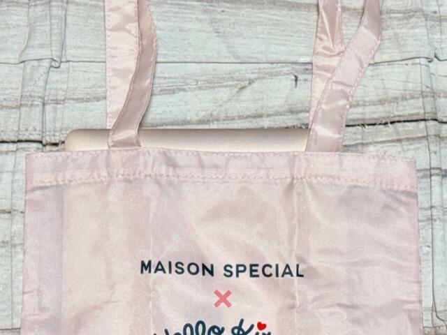フロントには「MAISON SPECIAL×Hello Kitty」のロゴプリント入りで、コラボならではの特別感もたっぷり。キティちゃんロゴのハートやリボン、洋服のレッドがほどよいアクセントになっています。