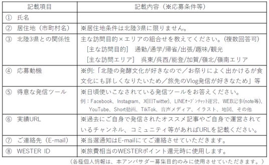 等各種媒体での発信を通じて、北陸のファンを増やす活動を担っていただきます。