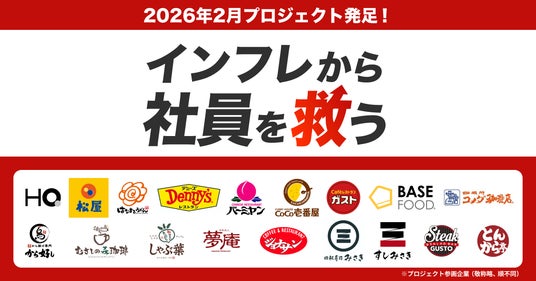 物価高と実質賃金の減少が続く今、働く人々の生活を守ることは、企業の枠を超えて取り組むべき喫緊の社会課題です。「松屋」「ガスト」「デニーズ」「バーミヤン」「CoCo壱番屋」など、働く人々の“食”を支える主要飲食店・企業が本プロジェクトに参画しており、「食事補助」の普及と支援を通じて、この社会課題の解決に挑みます。