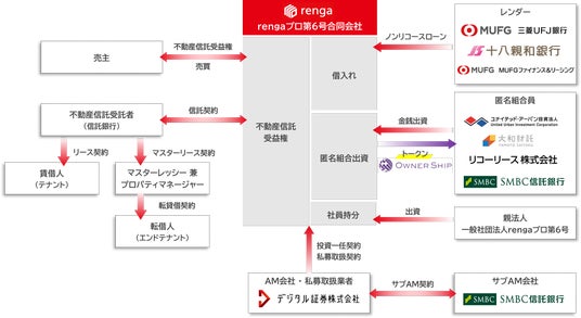 本ファンド組成にあたっては、1.東京都内のレジデンス7棟を投資対象物件とし、2.株式会社三菱UFJ銀行、株式会社十八親和銀行およびMUFGファイナンス&リーシング株式会社がノンリコースローン(*2)に取り組み、3.ユナイテッド・アーバン投資法人、大和財託株式会社、リコーリース株式会社、株式会社SMBC信託銀行等が出資しました。なお、本ファンドの運用業務の一部については、DS社から株式会社SMBC信託銀行に委託しております。