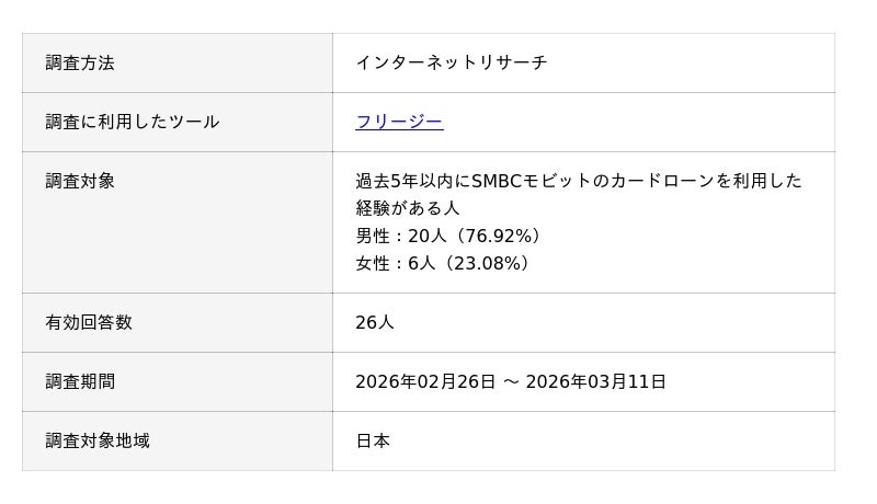 株式会社ゼロアクセル(本社:東京都千代田区、代表取締役:大福裕貴、以下ゼロアクセル)は自社運営サイト『ココモーラ』にて、「SMBCモビットのカードローンに関するアンケート調査」を行いました。