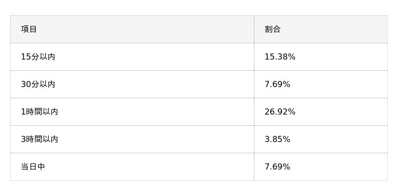 - 融資スピードも非常に早く、合計して約6割の人が「申し込み当日中」に融資を受けている。そのうち半数が1時間以内という早さで融資を完了しており、急な出費への圧倒的な対応力が裏付けられた。