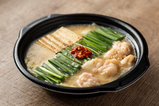 主役の国産牛もつは小腸のみ、こだわりの真っ直ぐに並べられたニラ、程よい食感のキャベツ、風味豊かなごぼう、そしてスープが染み込んだ豆腐まで、もつ鍋に欠かせない具材をオールインワンで詰め込みました。