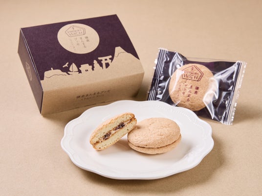 ふっくらとした自家製ラムレーズンと口どけの良い風味豊かなバタークリームを軽い食感のビスケット(鎌倉ビスケ)でサンド。『鎌倉ウィッチ』は煮上がった直後にラム酒を加えアルコール分を揮発させ、その後じっくり休ませることでレーズンにやさしく上品なラムの香りを閉じ込めています。