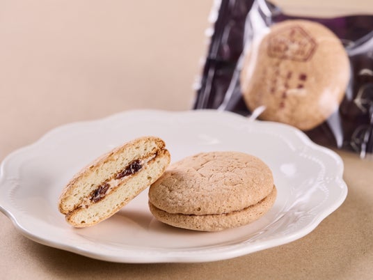 厳選されたアーモンドパウダーを贅沢に使用したふんわり、しっとりとしたブッセ生地に、クラッシュしたラムレーズンを贅沢に散りばめたラム酒香るクリームを優しくサンドしました。