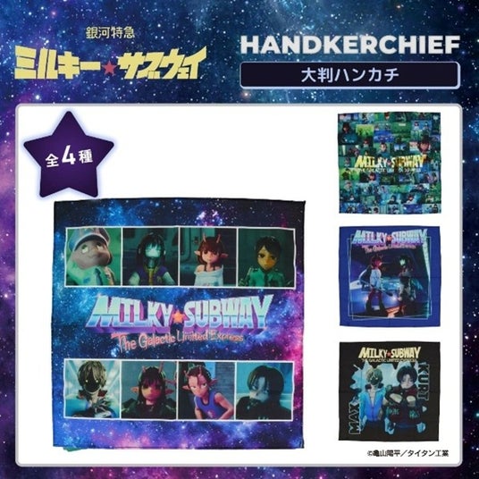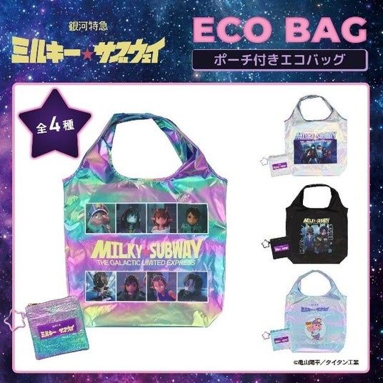 新商品は、普段使いにもピッタリなエコバッグとハンカチ。「銀河特急ミルキー☆サブウェイ」の世界観がちりばめられた魅力的な商品です。