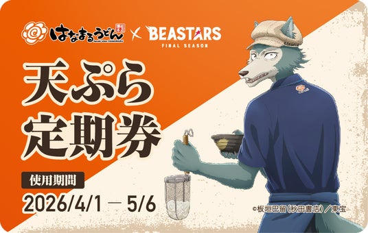 はなまるオリジナル定期券に加え、アニメ『BEASTARS FINAL SEASON』とのコラボレーション第2弾として、アニメ公式による描き下ろしイラストを使用したデザインを含む、計2種類の『天ぷらおでん定期券』も数量限定で販売いたします。
