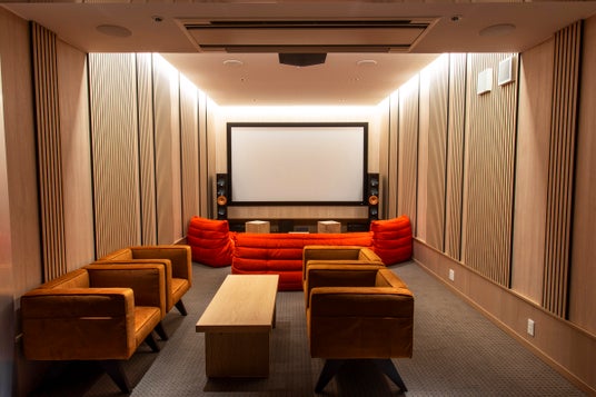 ミュージック・シアタールーム英国製オーディオブランド「KEF」のスピーカーを備え、まるで劇場にいるような臨場感を貸し切りで味わえるシアタールーム。ご自身のデバイス(スマートフォンなど)上にある音楽・動画配信サイトからの再生が可能で、お好きな音楽や動画をドルビーアトモスにも対応する高音質と130インチのサウンドスクリーンでご体感ください。