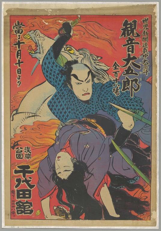 『観音大五郎』ポスター2026年に没後100年を迎える尾上松之助主演・小林弥六監督の『観音大五郎』が、浅草公園の千代田館で1915年に封切られた際のオリジナル・ポスター。