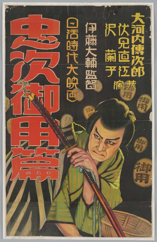 『忠次御用篇(忠次旅日記 御用篇)』ポスター伊藤大輔監督『忠次旅日記』の第3部にあたる『忠次御用篇』のポスター。長らくロスト・フィルムだとされていたが、1991年に広島県の民家で奇跡的に発見された。
