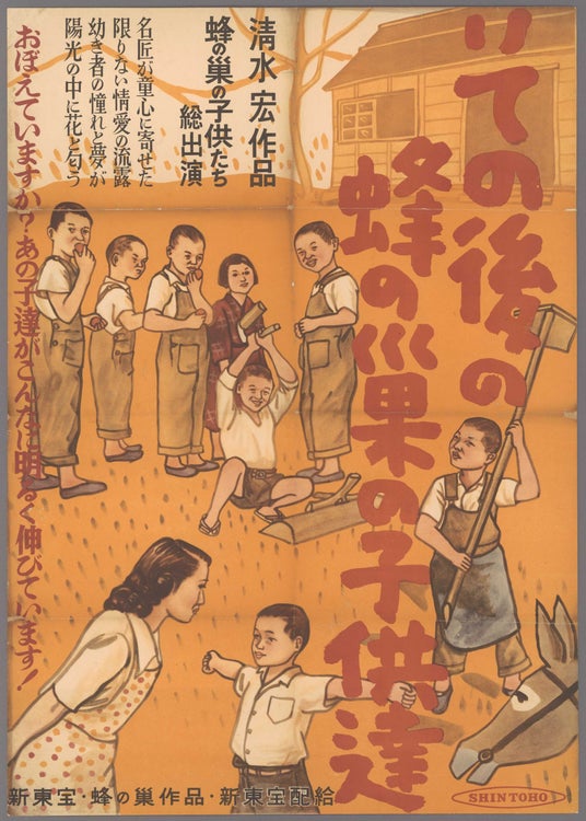 『その後の蜂の巣の子供達』ポスター清水宏が実際の戦災孤児をキャストとスタッフにして撮影した作品のポスター。暖かみのある色彩が映画の内容と調和している。