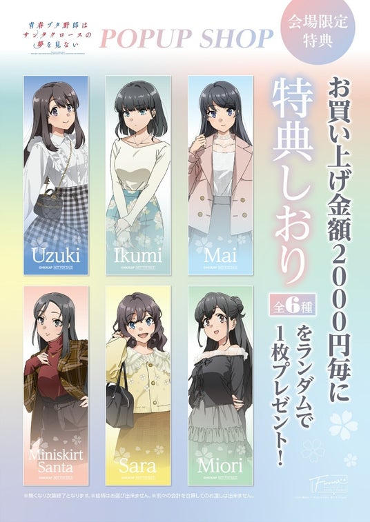 株式会社二葉企画(本社:東京都文京区、代表取締役:小林 伸行)が運営する、漫画・アニメに特化したブランド「Fuuuu」は、2026年4月20日(月)~29日(水)にリンクス梅田、2026年4月24日(金)~5月6日(水)に吉祥寺PARCOにて、TVアニメ『青春ブタ野郎はサンタクロースの夢を見ない』POPUP SHOPを開催することを発表しました。