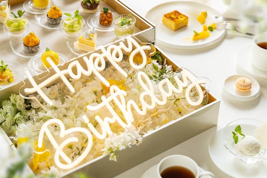ザ ジャクソン ガーデンでは、誕生日や結婚記念日など、大切な記念日を祝うための特別なサービスをご提供しております。特に人気のサービスとして、BOX下段に設置された「HAPPY BIRTHDAY」のネオンサインや、フレンチトーストにチョコペンでメッセージを添えるサービス(事前予約制・無料)がございます。大切な方との祝福のひとときを、より一層特別なものとしてお楽しみいただけます。