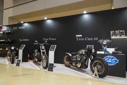 そしてモダンクラシックエリアでは、人気のトライアンフ ボンネビル系カスタムパーツで人気の「MOTONE CUSTOMS」では新たなカスタムモデルとしてスラクストンとスクランブラーを追加。同社の人気アパレルとともにゴッドブリンクヘルメット&アリートゴーグルを各車両に合わせて提案。