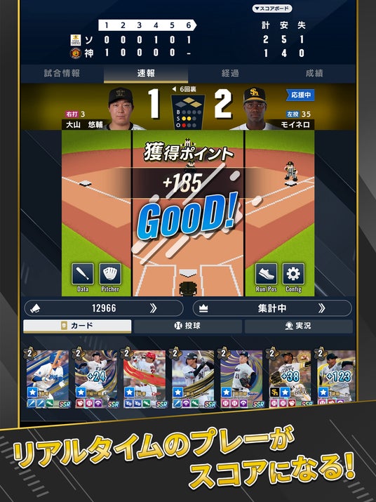 “プロ野球”ד野球速報”דカードバトル”で、いつでもプロ野球を楽しめる新アプリです。▼試合速報をチェック!