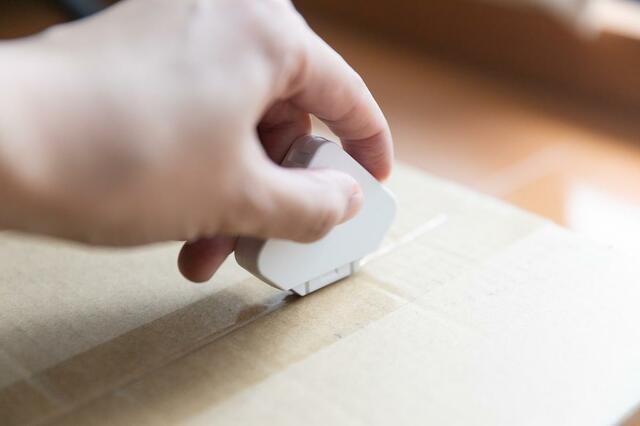 ダンボールに貼られたテープ、ハサミや普通のカッターでは地味に切りづらいな〜と思っていたのですが、この「ダンボールカッター」ならスッと刃が入るのでストレスフリー!