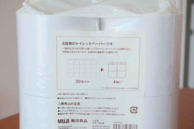 パッケージの裏を見てみると、災害時の備蓄にも便利と書いていました。芯のある50m巻きのトイレットペーパー20個分が4つになっているのだから、そりゃあ収納の場所も取らなくていいですよね。なるほどなあ。
