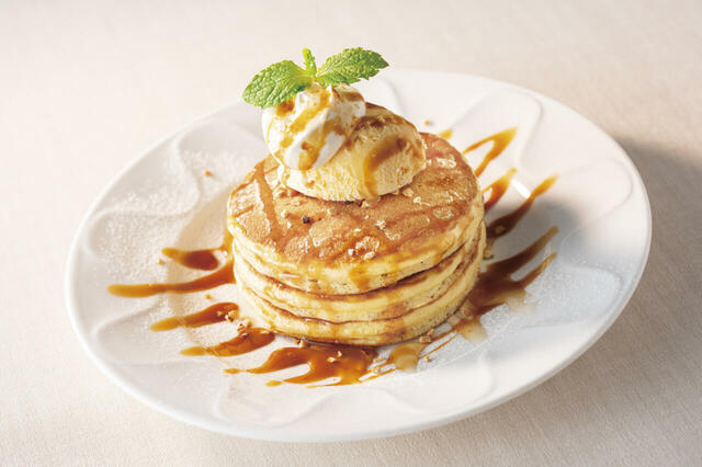 このパンケーキは歴史が古く、2001年に登場して以来、今でも不動の人気デザートなのだとか。そして2025年には生地の粉を国産小麦粉「きたほなみ」にリニューアルし、より一層、もっちり、しっとりとした食感に仕立てたそうですよ。