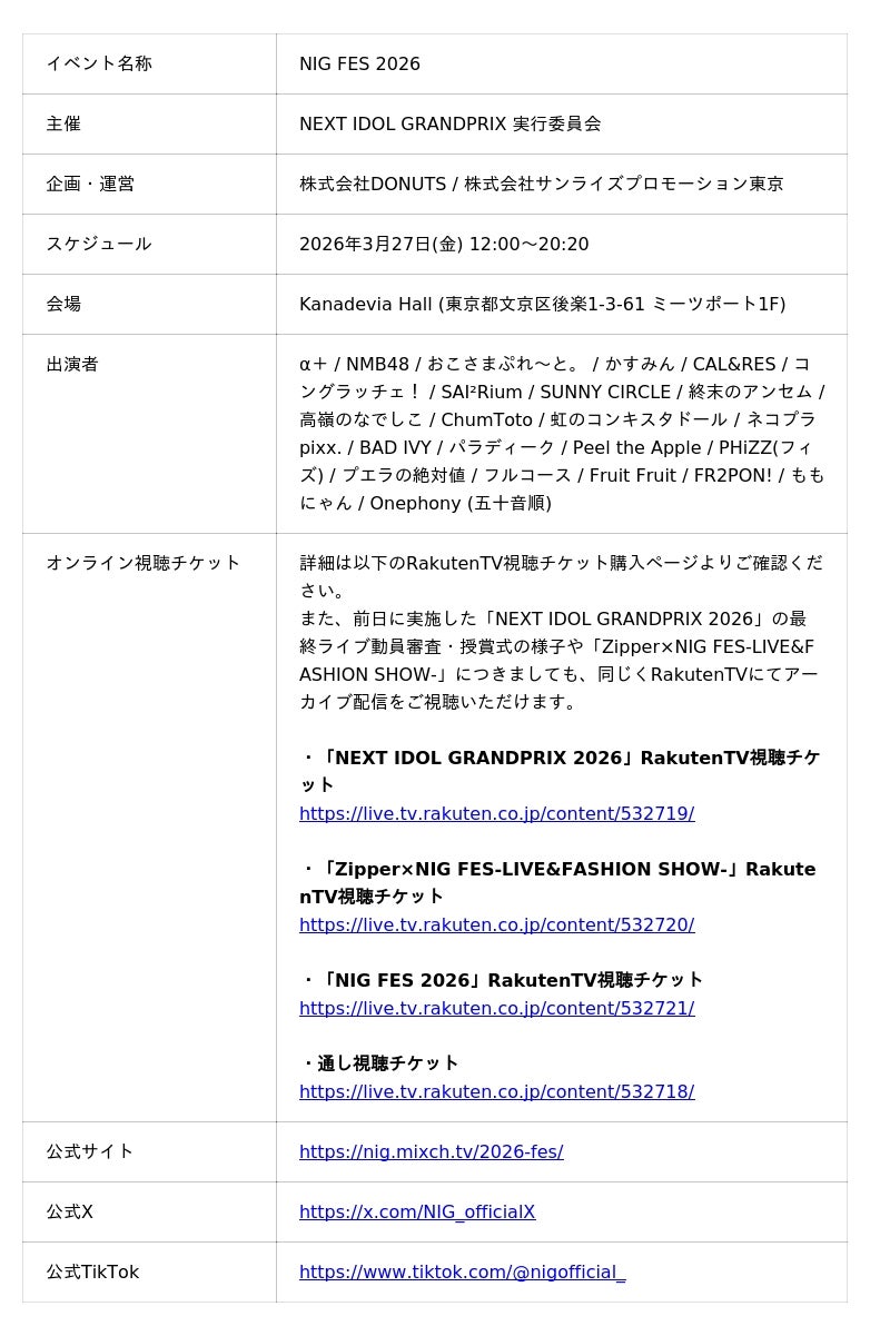 「NIG FES 2026」公式サイト: https://nig.mixch.tv/2026-fes/
