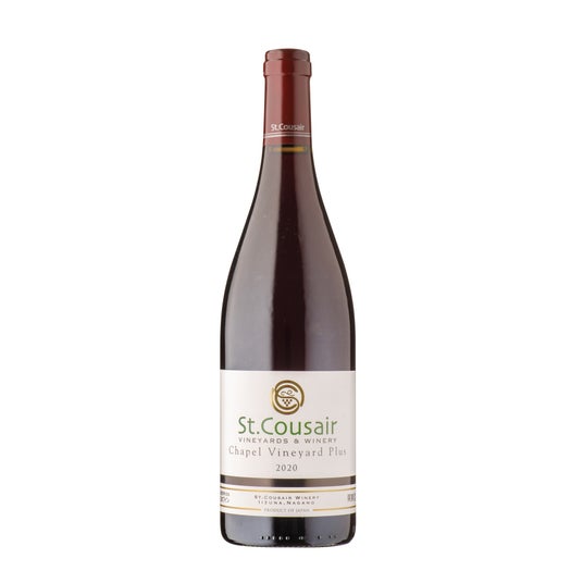 【チャペルヴィンヤードプラス2020】 サンクゼールワイナリーのレストランとチャペルの前に広がる南向きの急斜面に位置する自社畑「チャペルヴィンヤード」。この畑のぶどうと、ほかの2つの自社畑で収穫されたぶどうを醸し、上品な果実味と奥深さが味わえるワインが生まれました。