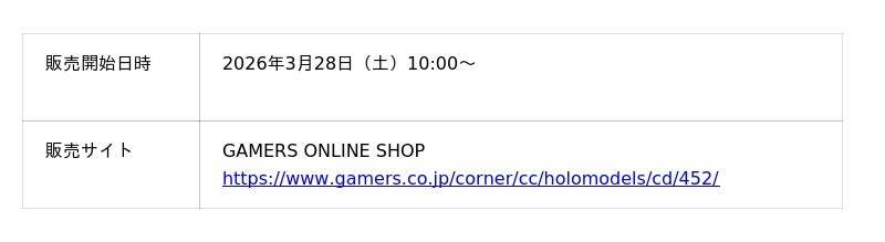 GAMERS ONLINE SHOP:https://www.gamers.co.jp/corner/cc/holomodels/cd/452/
