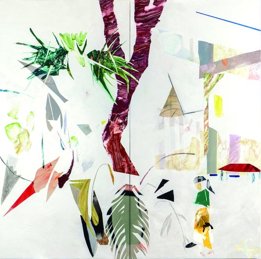 本展はこうした彼女の近年の意識を引き継ぎつつ、制作をさらに他者との関わりへとひらいていく試みです。会期前半の4月25日(土)から5月27日(水)までは滞在制作を行い、会場内をアトリエとして公開します。来場者は制作中の作家と自由に交流できるほか、キャンバスに自由に絵を描き加えることのできる参加型の取り組みも予定しています。5月30日(土)からは、こうした滞在制作と共同的なプロセスを通じて生まれた新作を中心に展示します。そのほか、赤松が娘と共作したドローイングや過去のコラージュ作品群も紹介します。