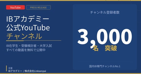 株式会社 Linksenpai(所在地:東京都渋谷区、代表取締役:吉田志織)が運営する IB アカデミー の公式 YouTube チャンネル(@linksenpai)は、2026 年 3 月、チャンネル登録者数 3,000 名を突破 しました。国内における国際バカロレア(IB)専門の YouTube チャンネルとして最大規模となり、IB 教育の情報発信においてトップポジションを確立しています。
