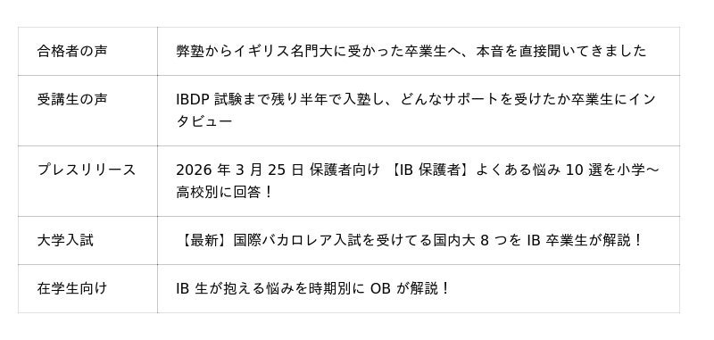 IB 在学生から受験検討者・大学入試対策まで、無料で使える情報発信を継続