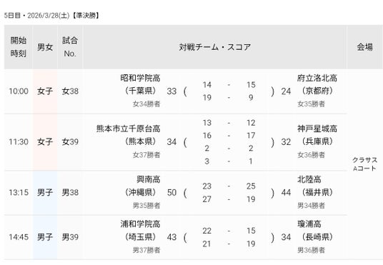本日、2026年3月28日(土)に「第49回全国高等学校ハンドボール選抜大会」の競技5日目が行われ、男女準決勝が実施されました。