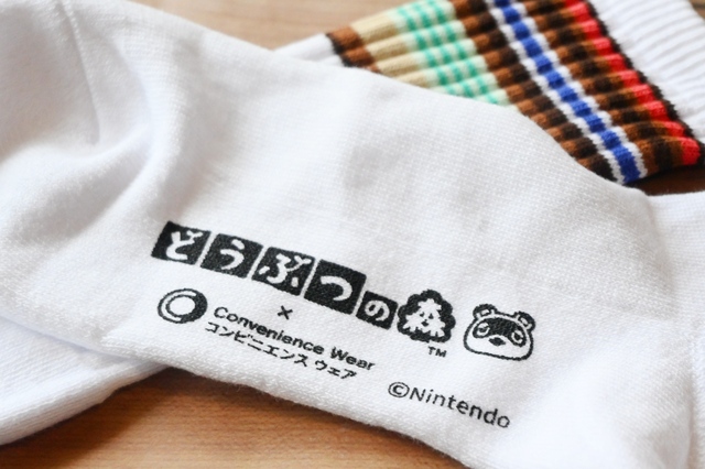 今回チェックしたのは「どうぶつの森」特別デザインの「タオルインポーチ」(2290円)と「ラインソックス」(600円)。
