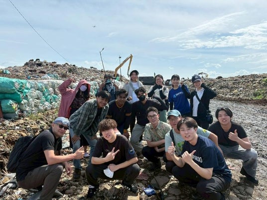 現地では、本学の学生10人に加え、ハサヌディン大学の学生10人、マカッサル国立大学の学生10人が参加しました。総勢30人の学生は混成チームを編成し、日本人学生と現地の学生が協働しながら、ゴミ山やスラム地域でのフィールドワーク、ゴミ分別カードゲーム制作、現地小学校での出前授業等、ごみ問題を題材とした実践的な活動に取り組みました。あわせて、生ごみの堆肥化を行うコンポストを共創し、実践的な学びを通して、地域社会に働きかけるソーシャルインパクトを生み出しました。