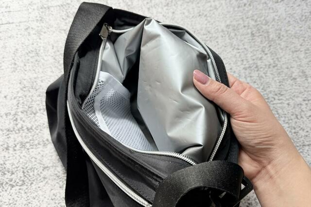 ちなみに、「保冷ショルダーバッグ」の容量は約3.5Lと約7Lの2種類。普段持ち歩く荷物とペットボトルなどをまとめて一緒に入れて使いたかったので、筆者は約7Lのタイプを購入しました。