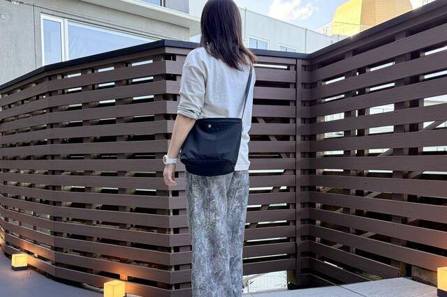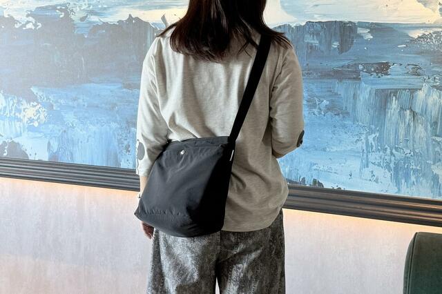 見た目はどう見ても普通のショルダーバッグ。アウトドア用のようなゴツさもなく、いかにもな仰々しさもなく、普段の服装になじむ気軽でラフなデザインです。いい意味で“保冷バッグっぽくない”から、普段使いのショルダーバッグとして違和感なく使えます。